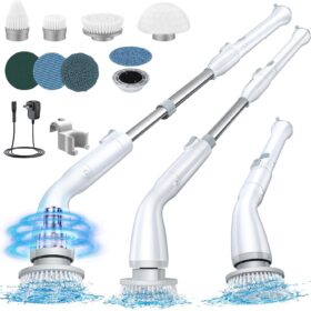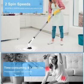 Leebein Electric Spin Scrubber, Cordless Cleaning Brush with 8 Replaceable Brush Heads, Tub and Floor Tile Power Scrubber Dual Speed with Adjustable & Detachable Handle for Bathroom Cleaning