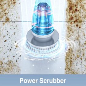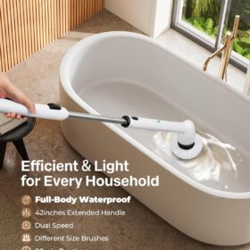 LyriFine Electric Spin Scrubber, New Full-Body IPX7 Waterproof Bathroom Cleaner Brush, Shower Scrubber with Long Handle & 2 Speed, Heads Replacement, Cleaning Supplies for Tub Shower Tile Floor