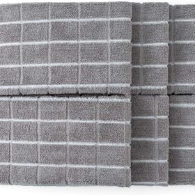 Microfiber Dish Towels – Soft, Super Absorbent and Lint Free Kitchen Towels – 8 Pack (Lattice Designed Gray Colors) – 26 x 18 Inch