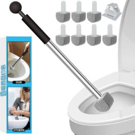 Pumice Stone Toilet Bowl Cleaner Toilet Deep Cleaning,Bathroom Cleaner Brush with Long Handle for Remove Hard Water Stains with Toilet Handle+ Pumice Stones