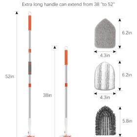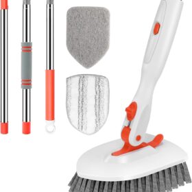 SetSail Floor Scrub Brush, 3-In-1 Tile Tub Floor Scrubber with 52-inch Adjustable Long Handle Shower Cleaner Brush and 3 Detachable Replacement Brush Heads for Cleaning Bathroom Kitchen Walls Tub Tile