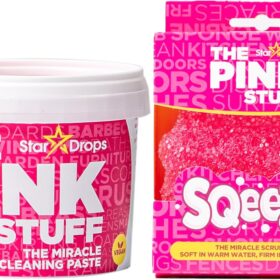 Stardrops – The Pink Stuff Miracle Cleaning Paste & SQeeZY Scrubber Sponge Bundle All-Purpose, Non-Scratch Cleaner for Kitchens, Bathrooms, Walls, Floors, Pots, Grout, and More