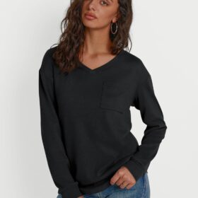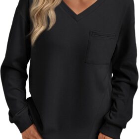 Trendy Queen Womens Long Sleeve Tops Casual Shirts V Neck Clothing Fall Fashion Clothes with Pocket