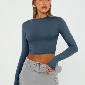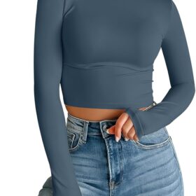 Trendy Queen Womens Long Sleeve Shirts Basic Crop Tops Tight Slim Fit Cute Teen Girls Fall Winter Y2k Clothes