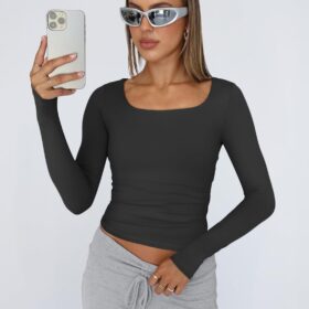 Trendy Queen Womens Long Sleeve Crop Tops Basic Slim Fitted Shirts Casual Fashion 2025 Going Out Y2k Tops Teen Girl Clothes