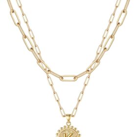 Yoosteel Gold Initial Necklaces for Women, 14K Gold Plated Dainty Layering Paperclip Link Chain Necklace Personalized Coin Initial Layered Gold Necklaces for Women