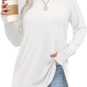 XIEERDUO Womens Tunic Tops to Wear with Leggings Long Sleeve Thumb Hole Shirts Crew Neck Curved Hem