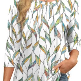 Womens Tops Casual 3/4 Sleeve Shirts Crew Neck Loose Casual Blouses Floral Print Tshirts