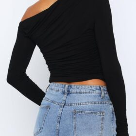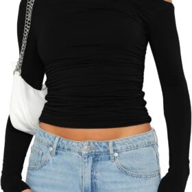 Darong Women’s Casual Long Sleeve Boat Neck Off Shoulder Slim Fit Crop Top Going Out Blouses Y2K Tight Shirts