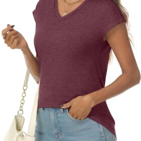 AUTOMET Womens V Neck Cap Sleeve Tshirts Casual Tops Cute T Shirts Summer Clothes Vintage Basics Tee