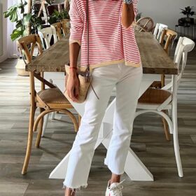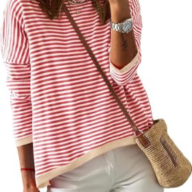 Dokotoo Long Sleeve Shirts for Women Casual Spring Crewneck Striped Color Block Shirt High Low Pullover Sweater Tops