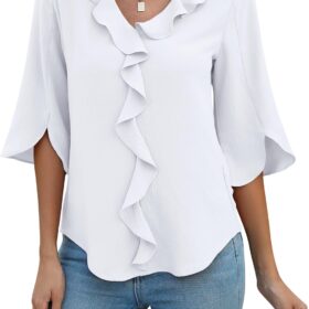 Blooming Jelly Womens Dressy Casual Blouses 3/4 Sleeve V Neck Ruffle Tops Business Ladies Summer 2024 Trendy Work Shirt