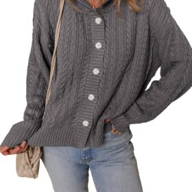 Dokotoo Oversized Sweaters for Women Casual Solid Long Sleeve Button Down Chunky Knit Hooded Cardigan Sweaters Coat