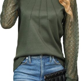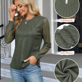Blooming Jelly Women’s Waffle Knit Tops Dressy Business Casual Blouses Lace Long Sleeve Work Shirts Fall Clothes