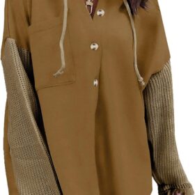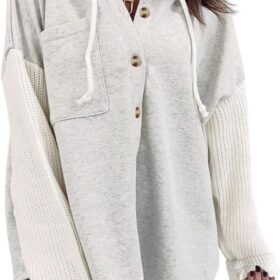 SHEWIN Oversized Sweatshirts for Women Loose Fit Casual Long Sleeve Button Hooded Sweatshirt Hoodie with Pocket