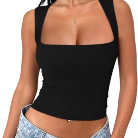 REORIA Butsmooth® Women’s Square Neck Going Out Crop Tops Double Lined Cute Basic Tank Tops 2024 Clothes