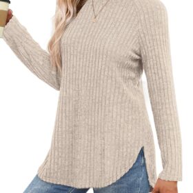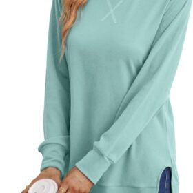 Saloogoe Sweatshirt for women Side Split Fall Fashion 2025 Long Sleeve Shirts Trending Now