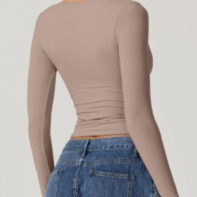 QINSEN Women’s Long Sleeve V Neck T Shirts Double Lined Crop Top Seamed Cup Going Out Tops