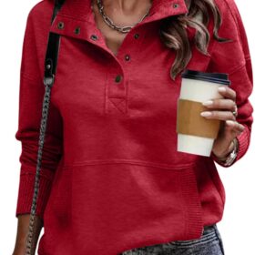 SHEWIN Womens Sweatshirt Casual Long Sleeve Lightweight Sweatshirts Button Loose Pullover Tops