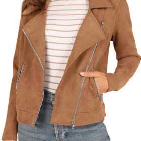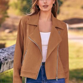 PRETTYGARDEN Womens Winter Moto Jacket Faux Suede Long Sleeve Zip Up Pockets Short Coat Y2K Fall Fashion Dressy Outerwear