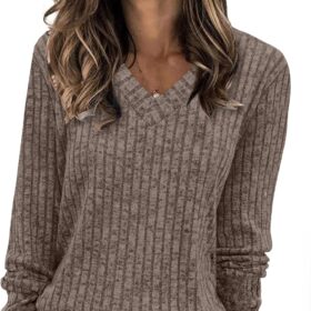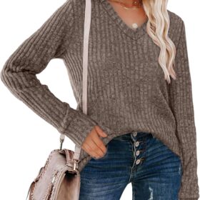 SAMPEEL V Neck Long Sleeve Shirts for Women Casual Fall Tops Lightweight Tunic Sweaters Fashion Clothes 2025