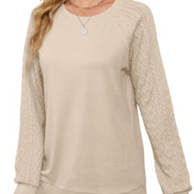 Saloogoe Sweatshirts for Women Crewneck Cable Knit Sleeve Sweaters Lightweight Fashion 2024