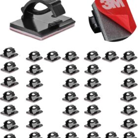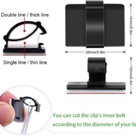 100pcs 3M Self Adhesive Cable Clips Wire Holders Cord Organizer Cable Clamp Management Sticky for Office Home Car Desk Tables PC Laptop TV Wall, Black