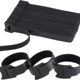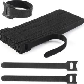 60 PCS 8 Inches Reusable Cable Ties, Adjustable Cord Straps, Wire Organizer, Cord Wrap and Hook Loop Cable Management – Black