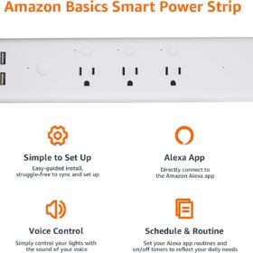 Amazon Basics Smart Plug Power Strip with 3 Individually Controlled Outlets and 2 USB-A Ports, Works with Alexa Only, 2.4 GHz Wi-Fi, No Hub Required, White