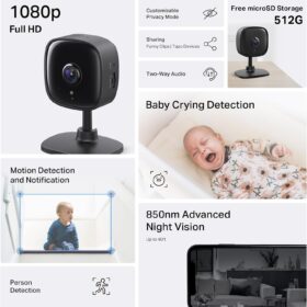 Tapo by TP-Link 1080P Indoor Security Camera for Baby Monitor, Pet Camera w/Motion Detection, 2-Way Audio, Night Vision, Cloud & SD Card Storage, Works w/Alexa & Google Home, Black, C101(4-Pack)