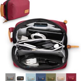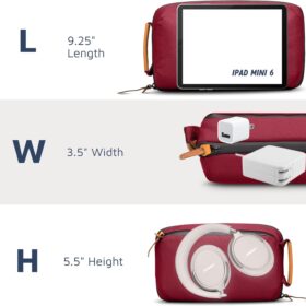 Tech Bag Organizer – Small Electronics Organizer Pouch for Travel – Premium Travel Case with Leather Accents – Mesh Pocket for Cables, Cords and Chargers (Red)