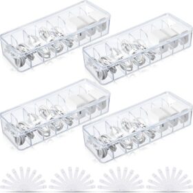 Tatuo 4 Pcs Cable Organizer with 40 Wire Ties, Clear Plastic Cord Storage Box with Lid for Home Office Desk Organizers and Accessories
