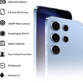 Unlocked Android Phone Android 13 Unlocked Phone 8-core 8GB+256GB Cell Phone 50MP+24MP Camera Pixels 6800mAh Battery for Extended Standby 6.7inch HD Screen Mobile Phone 5G Dual SIM (Blue)