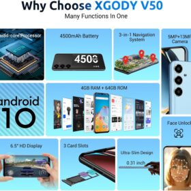 Xgody V50 Unlocked Cell Phones, 4GB+64GB ROM, 6.52