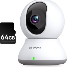 blurams Security Camera 2K, Baby Monitor Dog Camera 360-degree for Home Security (White + 64GB TF Card)
