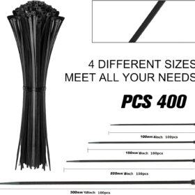 Cable Zip Ties,400 Pack Black Assorted Sizes 12+8+6+4 Inch,Multi-Purpose Self-Locking Nylon Cable Cord Management ,Plastic Wire Ties for Home,Office,Garden,Workshop. By HAVE ME TD