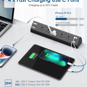 Desk Clamp Power Strip USB C,40W Total Fast Charging Station,4 PD 20W USB C Ports,Desk Edge Mount Power Strip 6 USB Ports 5 AC Outlets Surge Protector,6ft Cord,Fit 1.96