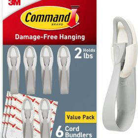 Command Cord Bundlers, Damage Free Hanging Cord Organizer, No Tools Cord Bundler for Hanging Electrical Cables, 6 Gray Cord Bundlers and 12 Command Strips