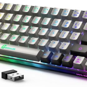 65% Wireless Gaming Keyboard, Rechargeable Backlit Gaming Keyboard, Plug-and-Play, Ultra-Compact Anti-ghosting No-Conflict Keyboard for PC Laptop Windows Gamer (Grey-Black)