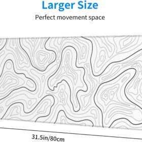 Abstract Topographic Map White Grey Black Gaming Mouse Pad Long Mouse Pad Large Desk Mat 31.5 X 11.8 Inch Mousepad with Non-Slip Base Stitched Edge Keyboard Mat for Gaming Office