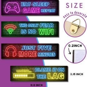 4 Pcs Printed Neon Gaming Posters, Teen Boys Room Decorations, gamer wall art Decor for bedroom Wooden