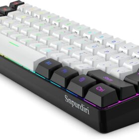 Snpurdiri 60% Wired Gaming Keyboard, RGB Backlit Mini Keyboard, Waterproof Small Ultra-Compact 61 Keys Keyboard for PC/Mac Gamer, Typist, Travel, Easy to Carry on Business Trip(Black-White)