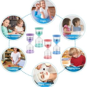 Set of 4 Hourglass Set Colour Children’s Timer, Hourglass Colourful Hourglass Set, Egg Timers, 5/10/15/30 Minutes Glass Timer for Children Brushing Teeth Classroom Games