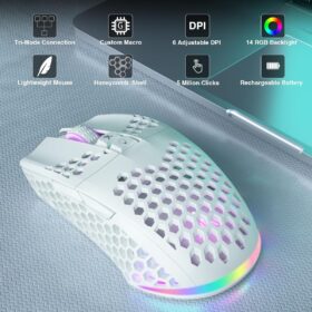 SM600 White Wireless Gaming Mouse,8000 DPI Tri-Modes BT5.1/Type-C Wired/2.4G Wireless Mouse with 2 Side Buttons, Programmable Macro Gamer Mouse with RGB Light for Laptop/PC/Mac