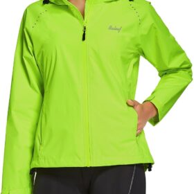 BALEAF Women’s Rain Jackets Waterproof Windbreaker Windproof Running Lightweight Cycling Jacket Reflective Packable Hooded