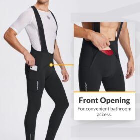 BALEAF Men’s Winter Cycling Bib Pants 4D Padded Thermal Water Resistant Bike Tights Cold Weather Warm Pockets