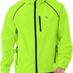 BALEAF Men’s Rain Jacket Waterproof Windbreaker Running Cycling Golf Hiking Gear Hood Lightweight Reflective Packable