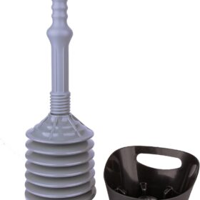 JS Jackson Supplies Grey Bellows Accordion Toilet Plunger with Black Storage Tray
