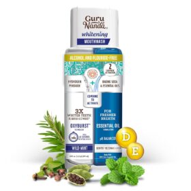 GuruNanda Teeth Whitening Dual Barrel Oxyburst Mouthwash – Alcohol & Fluoride Free, Hydrogen Peroxide to Promote Whiter Teeth – Wild Mint – 20 Fl Oz