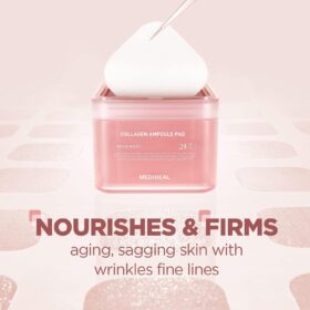 MEDIHEAL Collagen Ampoule Pad Square Cotton Facial Toner Pads Collagen & Ceramide – Skin Firming & Restore Elasticity – Tighten Wrinkles & Lines – Vegan Eco Silk Pads, 100 Pads